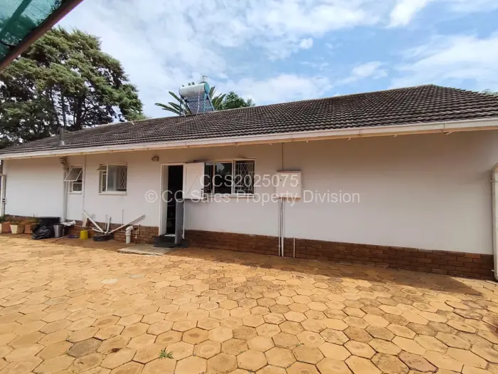 Outside, the property offers excellent utility and convenience. There is a storeroom, a single staff quarters with toilet, shower, bedroom and cooking area, as well as a single drive-through/mark-up garage. The outbuilding is also brick-under-tile.