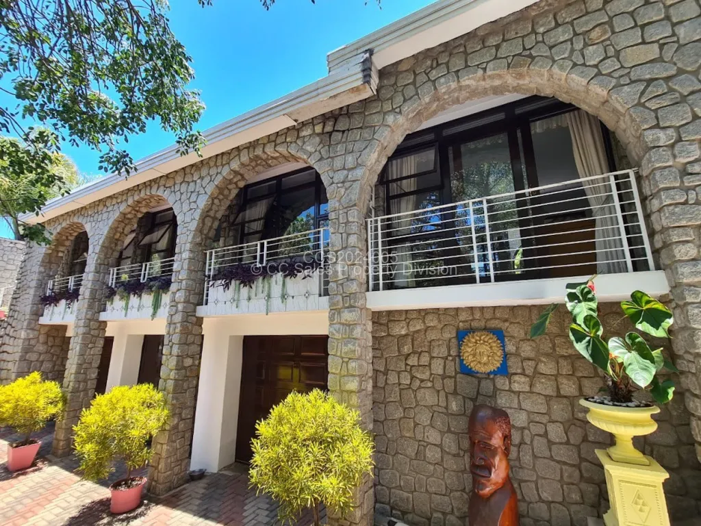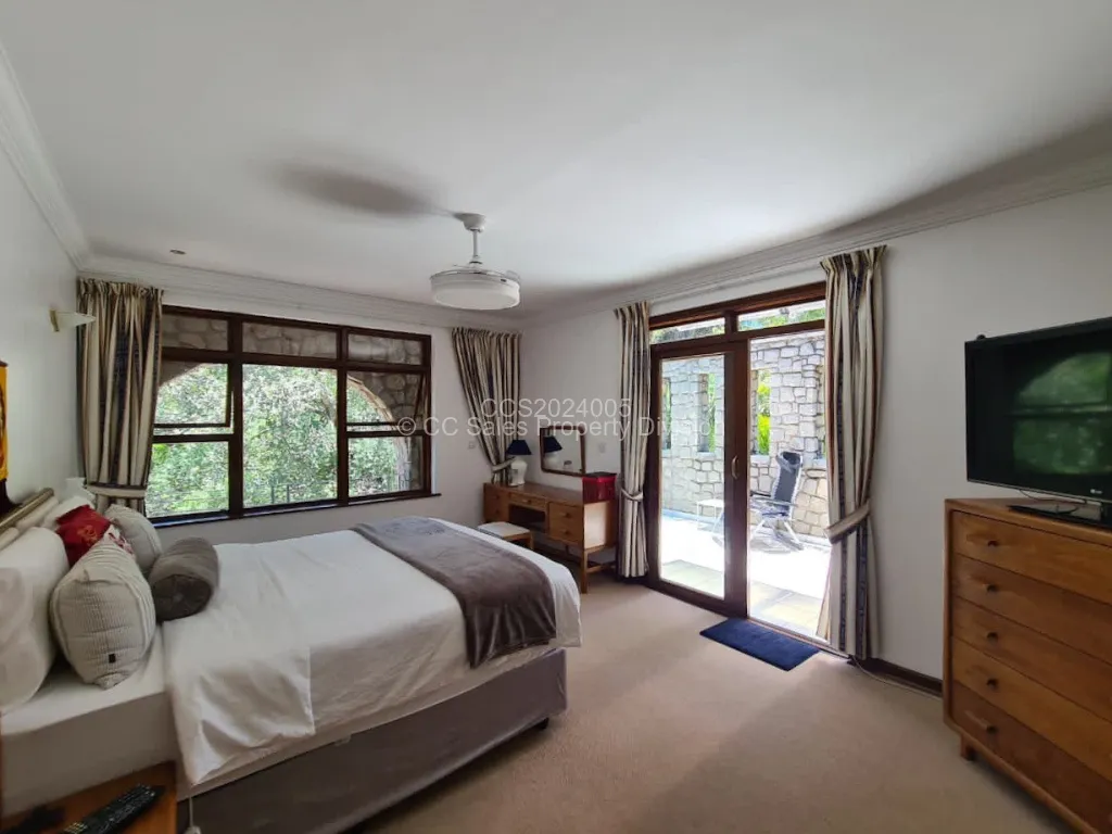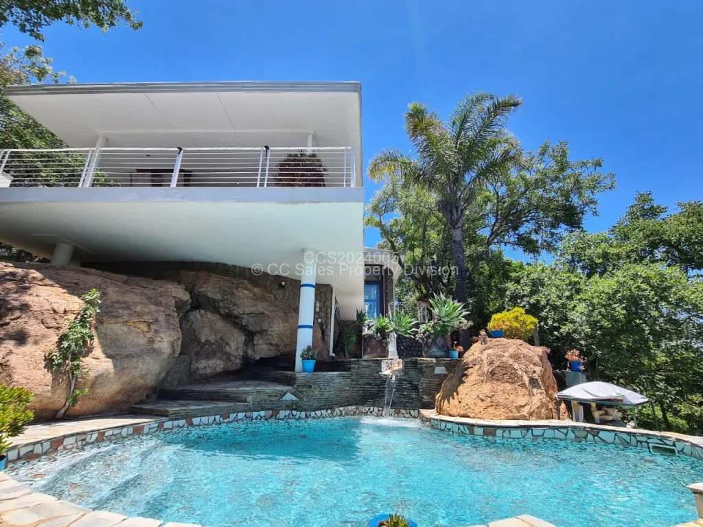 A verandah with a lovely view overlooking Bulawayo skyline and a sparkling swimming pool, borehole.