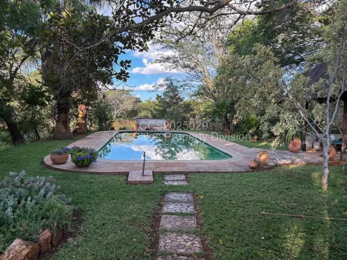 4 roomed workers quarters, lockup double garage and workshop, triple carport, swimming pool and rondavel plus developed garden.
