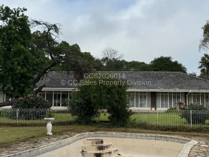 Outbuildings : there are two very large storerooms, a 4 bay lock up garage and double staff quarters with ablutions. Next to the large swimming pool (not in use), is a pool house with lovely entertainment area and braai area. The pool house has its own storeroom.