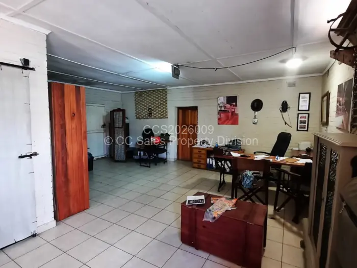 The brick-under-corrugated asbestos improvements comprise five spacious offices, six ablution facilities, and three kitchens, making the property well suited to multi-departmental operations or multiple tenants. The industrial component includes two partitioned workshops, one of which is equipped with a vehicle service pit, as well as two spray booths, three internal storerooms, and a separate external flammable materials storeroom.