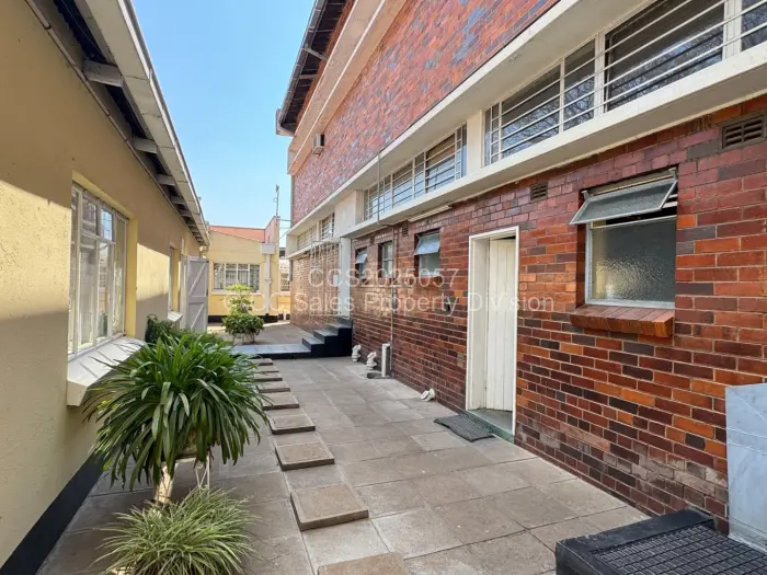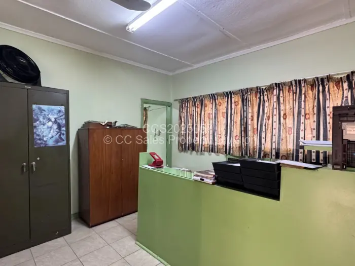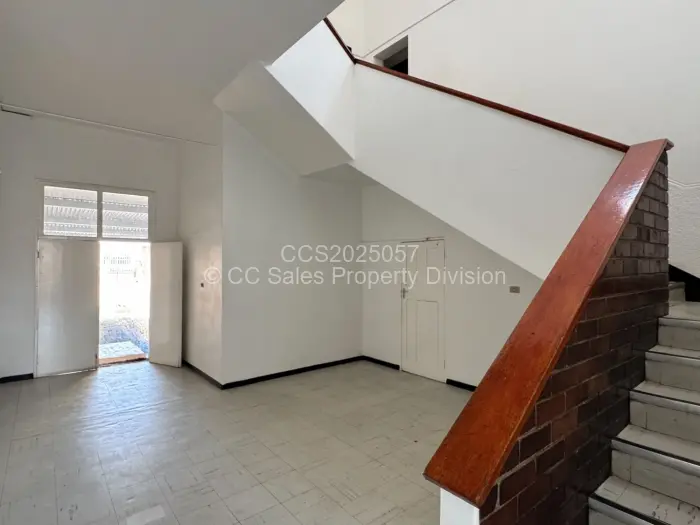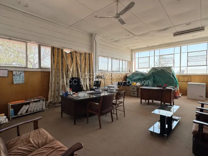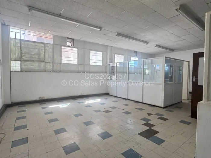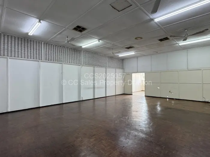 Upstairs consists of 2 halls, 1 large office space with 5 partitioned offices, walk in safe. 2 offices. Ablution facilities. 2 storage rooms.