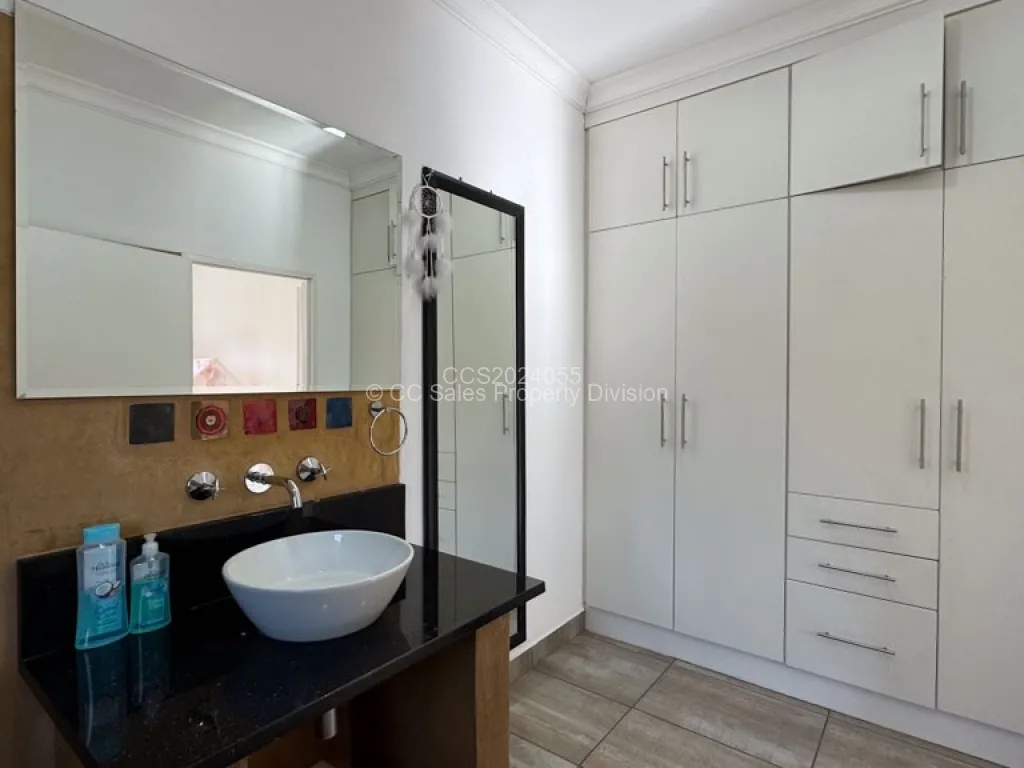 Each home has two well sized bedrooms, both are ensuite with a shower, toilet, handbasin & BICs and a small security-safe in each bathroom cupboard). The paved driveway leads to a separate building which houses a single carport, storeroom, and staff ablutions (shower, toilet & handbasin).